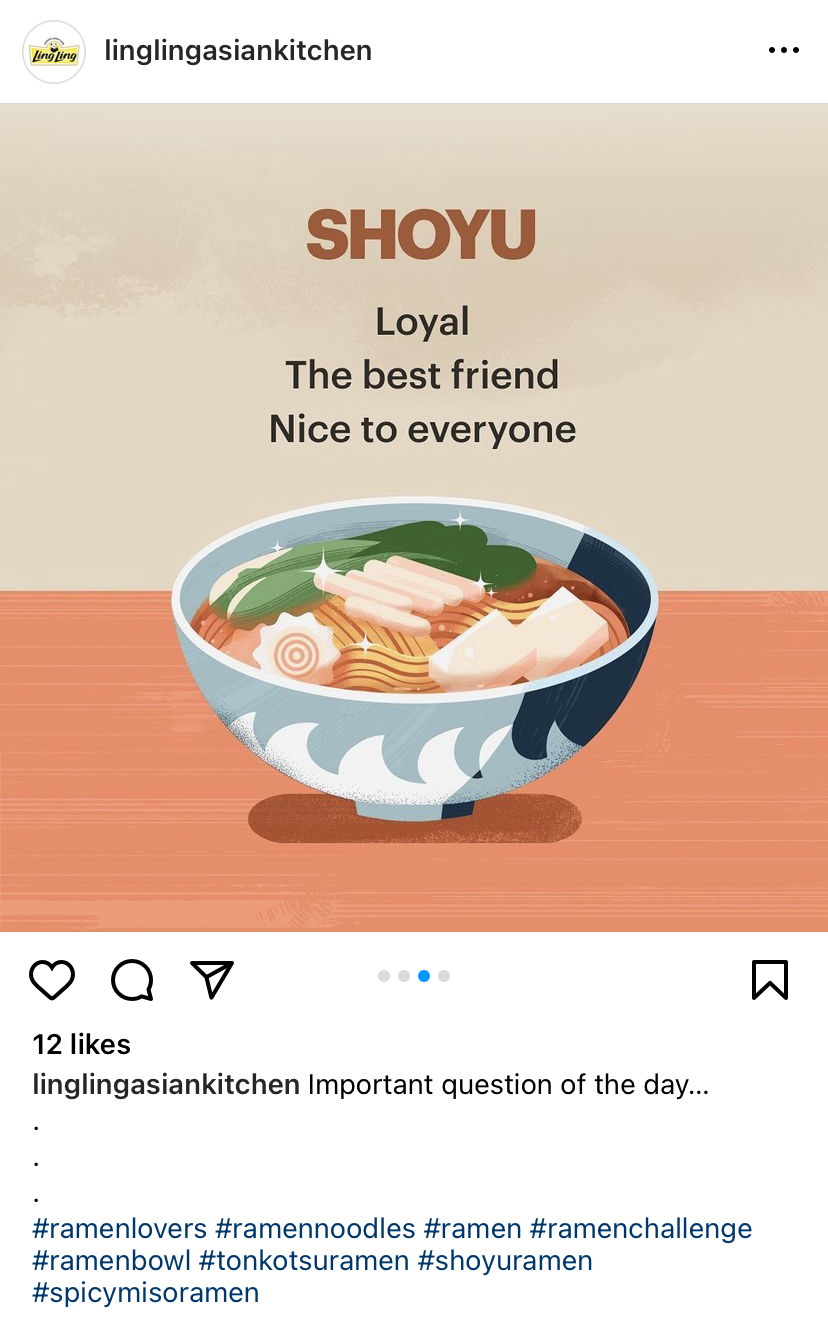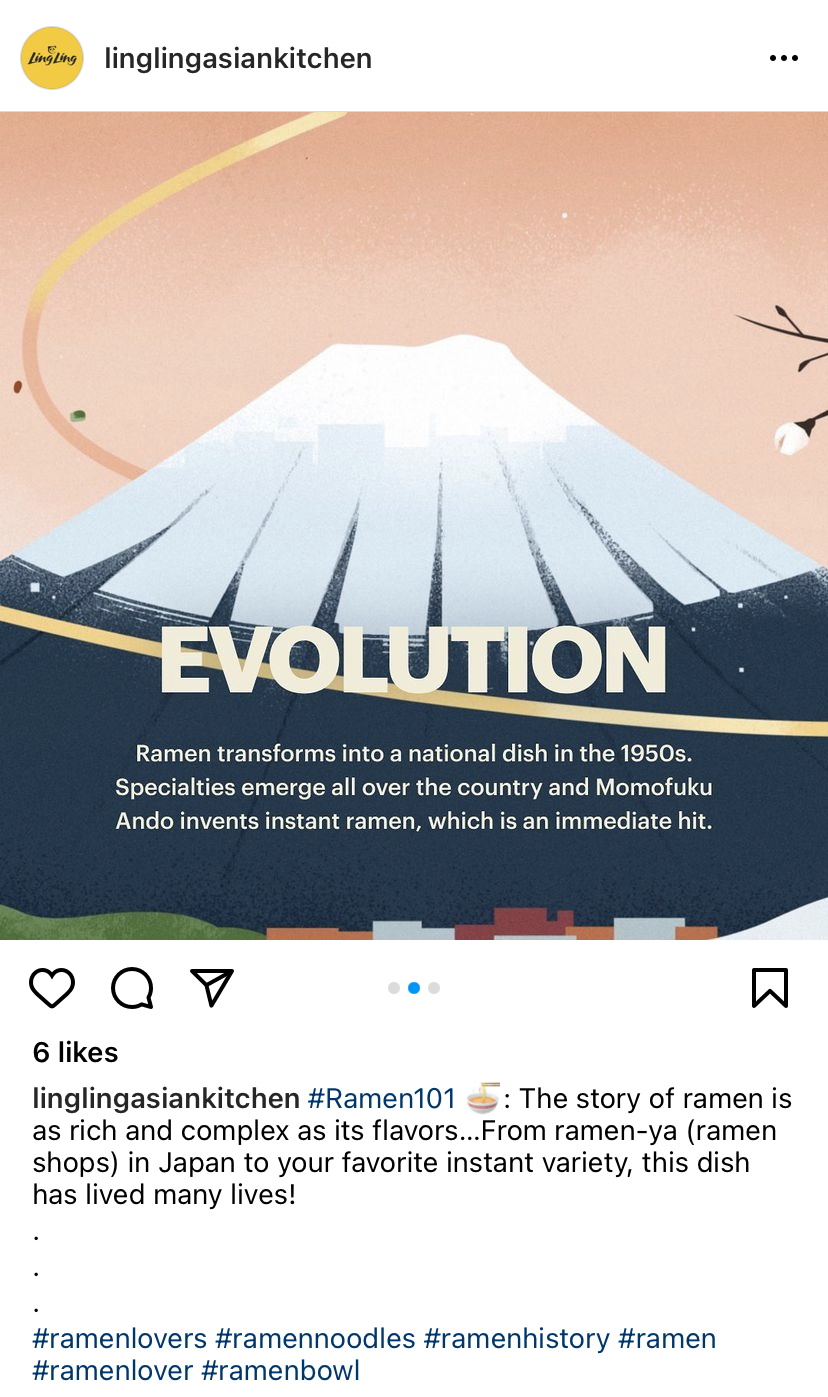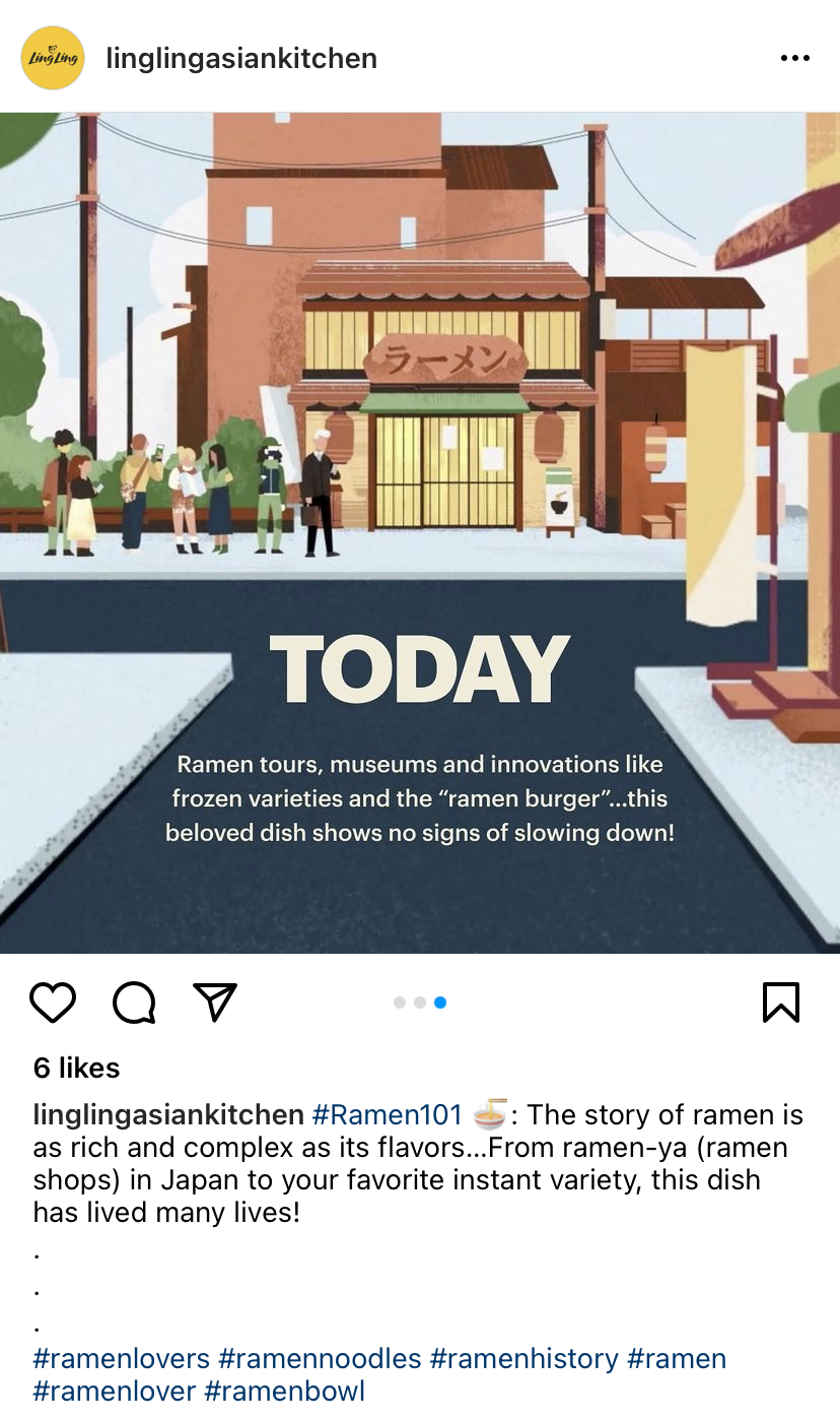 Ajinomoto is one of the leading distributors of Asian frozen foods and Ling Ling is their best-known brand (they make that bulk bag of frozen potstickers found at your local Costco). Ling Ling’s frozen ramen, though, is considered their best-kept secret. The brand had created a video spotlighting their ramen products, and wanted a simple landing page to house it. We took it a few steps further, concepting an immersive landing page experience. I focused on storytelling, crafting the page hierarchy in addition to developing a social content calendar to increase reach.