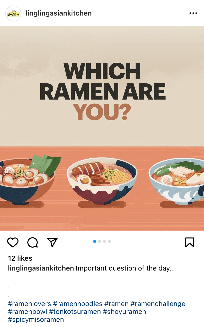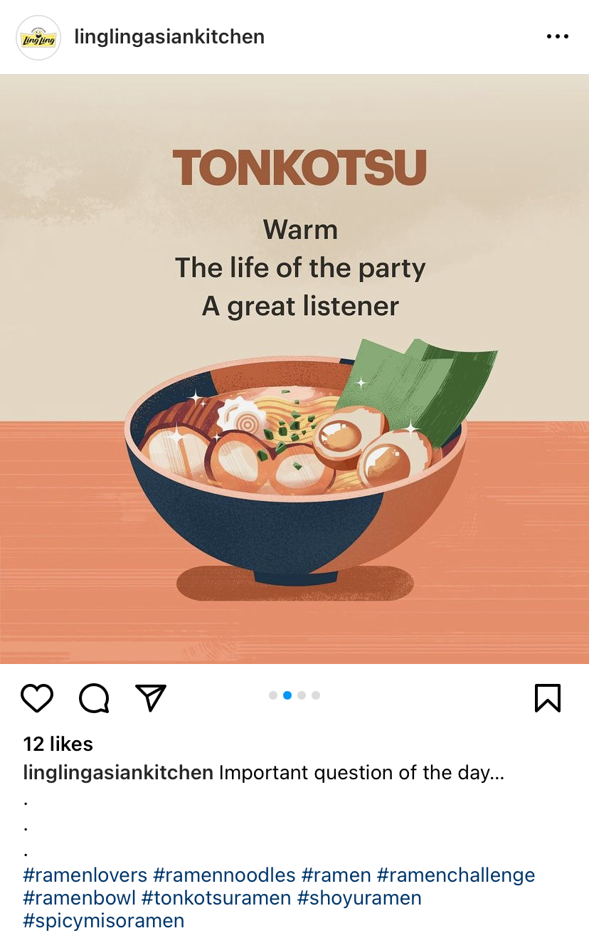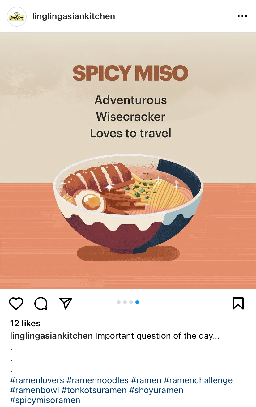 Ajinomoto is one of the leading distributors of Asian frozen foods and Ling Ling is their best-known brand (they make that bulk bag of frozen potstickers found at your local Costco). Ling Ling’s frozen ramen, though, is considered their best-kept secret. The brand had created a video spotlighting their ramen products, and wanted a simple landing page to house it. We took it a few steps further, concepting an immersive landing page experience. I focused on storytelling, crafting the page hierarchy in addition to developing a social content calendar to increase reach.